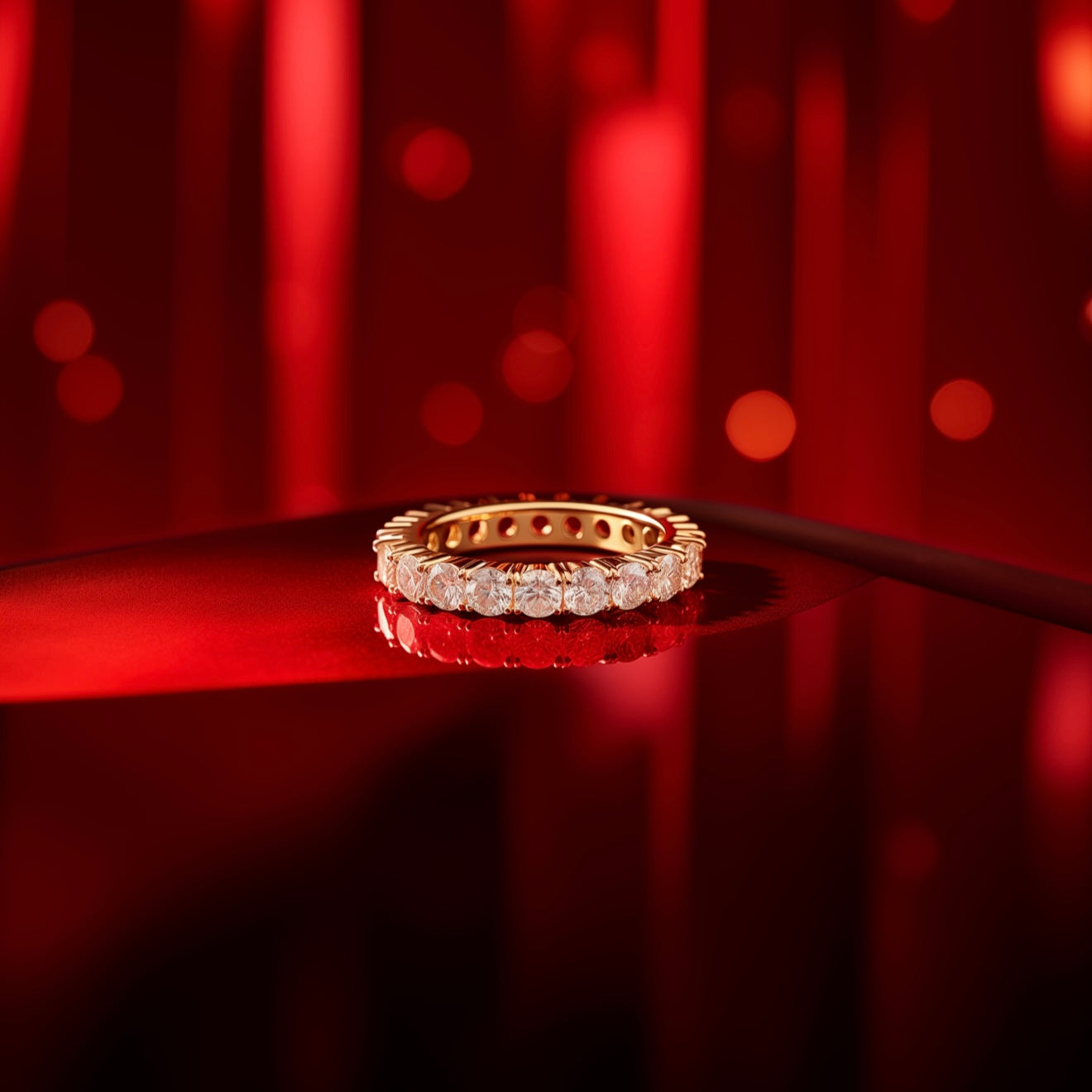 An eternal symbol of love and brilliance. Our Infiniti Band is crafted in luminous 18K yellow gold and features a seamless circle of hand-set lab-grown diamonds, embodying timeless elegance and modern sustainability.